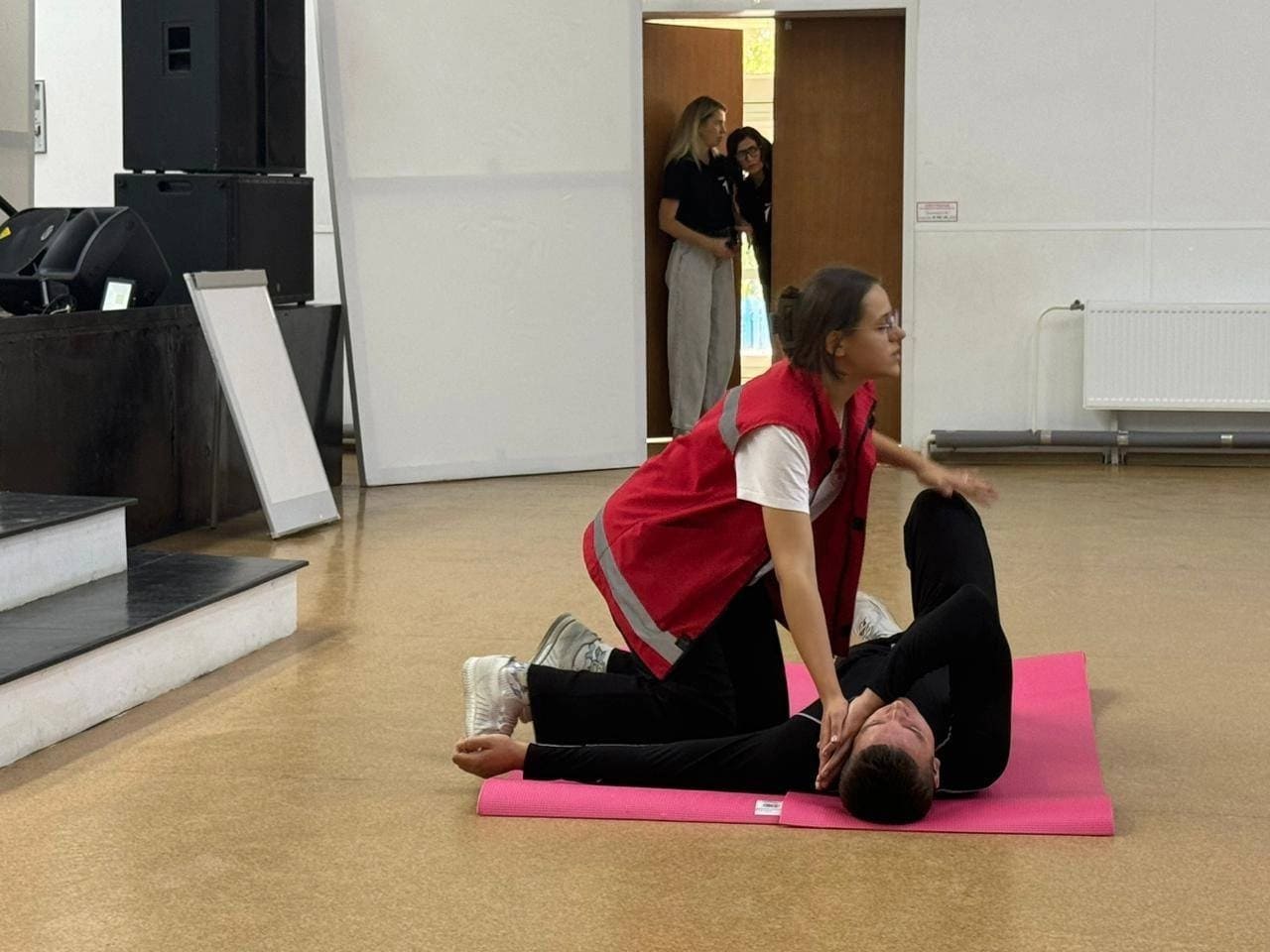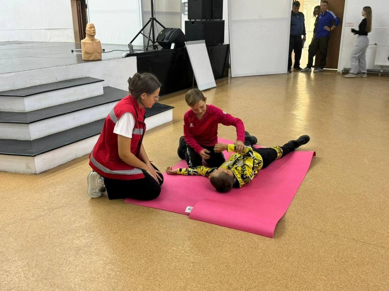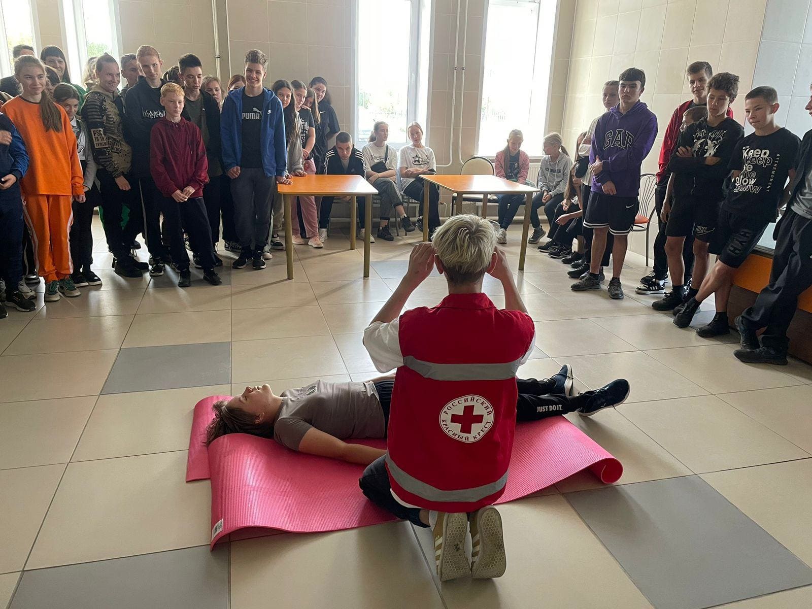 Инструкторы РКК рассказали ребятам о том, что такое первая помощь и как правильно её нужно оказывать в трудной ситуации в соответствии с общепринятым алгоритмом.